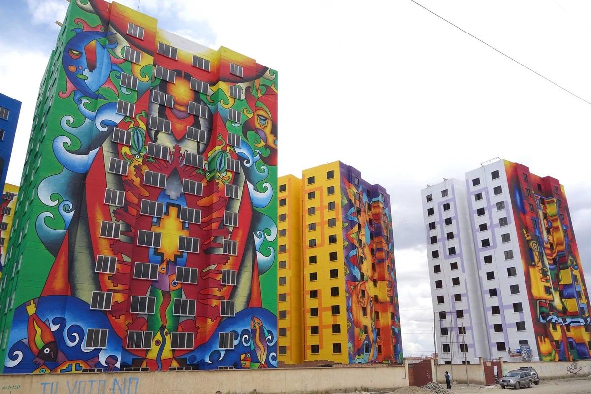 후원자님의 후원아동이 살고 있는 볼리비아에는 세계적으로 유명한 국민작가가 있는데요, 바로 아이마라족 출신인 로베르토 마마니 마마니(Roberto Mamani Mamani)입니다. 그가 서부에 있는 고산도시 엘알토의 7개 건물을 새롭게 변화시켰다고 하는데요. 사진에서 보는 것처럼 건물 외벽에 14개의 벽화를 그려낸 거죠. 이것이 그의 가장 큰 작품이 아니었을까요? 이 벽화를 그리게 된 계기는 볼리비아의 대통령인 에보 모랄레스의 요청에서 비롯되었다고 해요. 가난한 지역의 건물들을 새롭게 변화시켜보고자 하는 그의 의지를 담아 볼리비아에서 유명한 작가인 마마니 마마니에게 그림을 요청했던 거지요. 그의 활기 넘치고 컬러풀한 작품들은 안데스산맥의 상징성을 활용하여 볼리비아의 전통문화를 잘 이야기해주고 있는데요. 그 누구에게도 배우지 않고 혼자 독학으로 자신만의 작품을 만들어 낸 마마니 마마니는 1983년부터 50여개의 전시회를 통해 개성 가득한 아트를 공유하고 있다고 하네요!